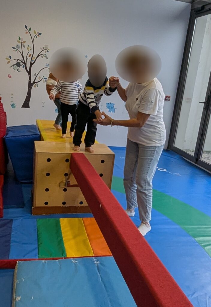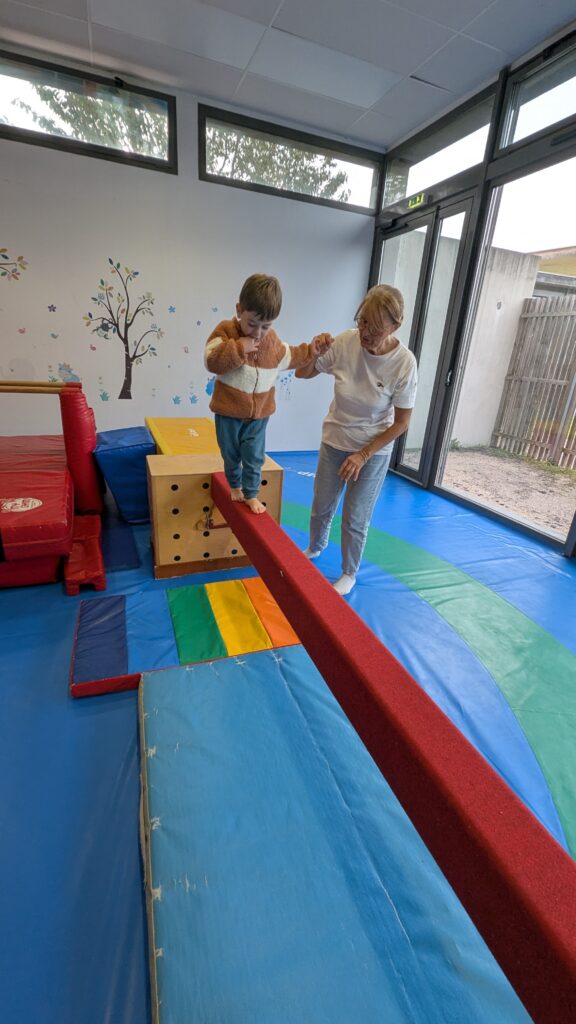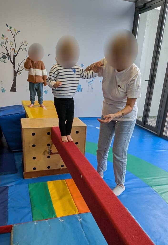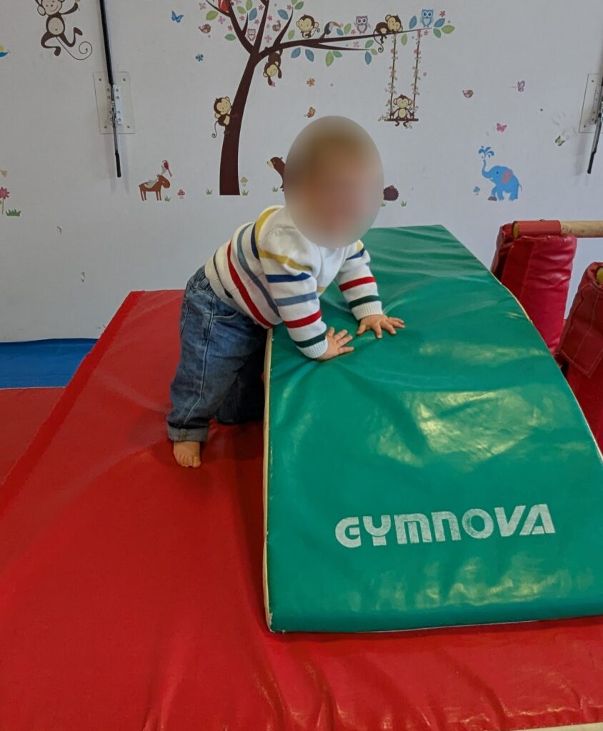 Ce matin, nous avons découvert et retrouvé avec plaisir les activités de baby gym ! Les enfants ont pu s’amuser à traverser la poutre avec de l’aide, grimper, courir et explorer l’espace. Pour Jules c’était l’occasion de partir à la découverte de toute la salle avec beaucoup de curiosité.