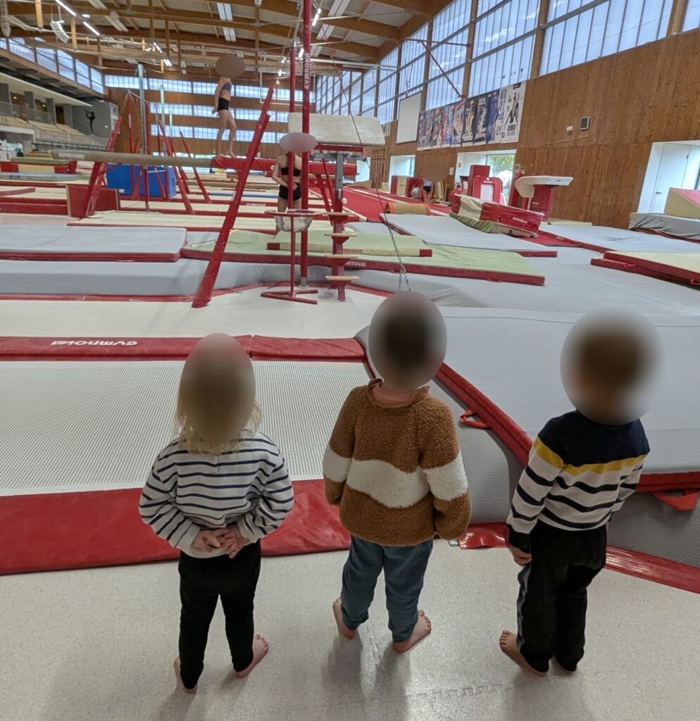 En fin de séance, grande surprise : nous avons eu accès au grand trampoline des gymnastes ! Après quelques sauts remplis d’énergie, les enfants se sont installés pour regarder les gymnastes réaliser de manifiques sauts.