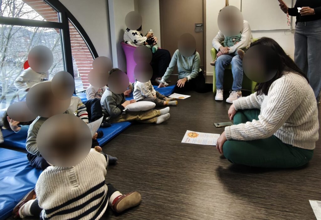Pour clôturer cette matinée hivernale, nous nous sommes rassemblés tous ensemble autour d’histoires et de chansons. Un temps calme, enveloppant, qui favorise l’écoute, le lien et la transition en douceur vers la fin de la séance.