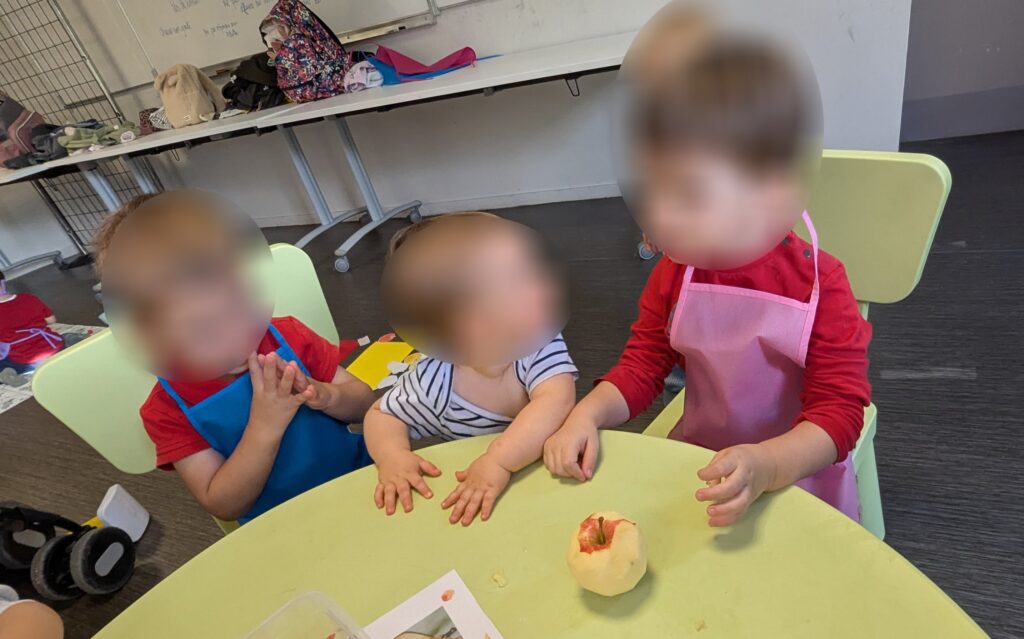 Pour faire suite à notre sortie au verger, nous avons proposer des activités de ce thème avec un atelier de pâtisserie.
