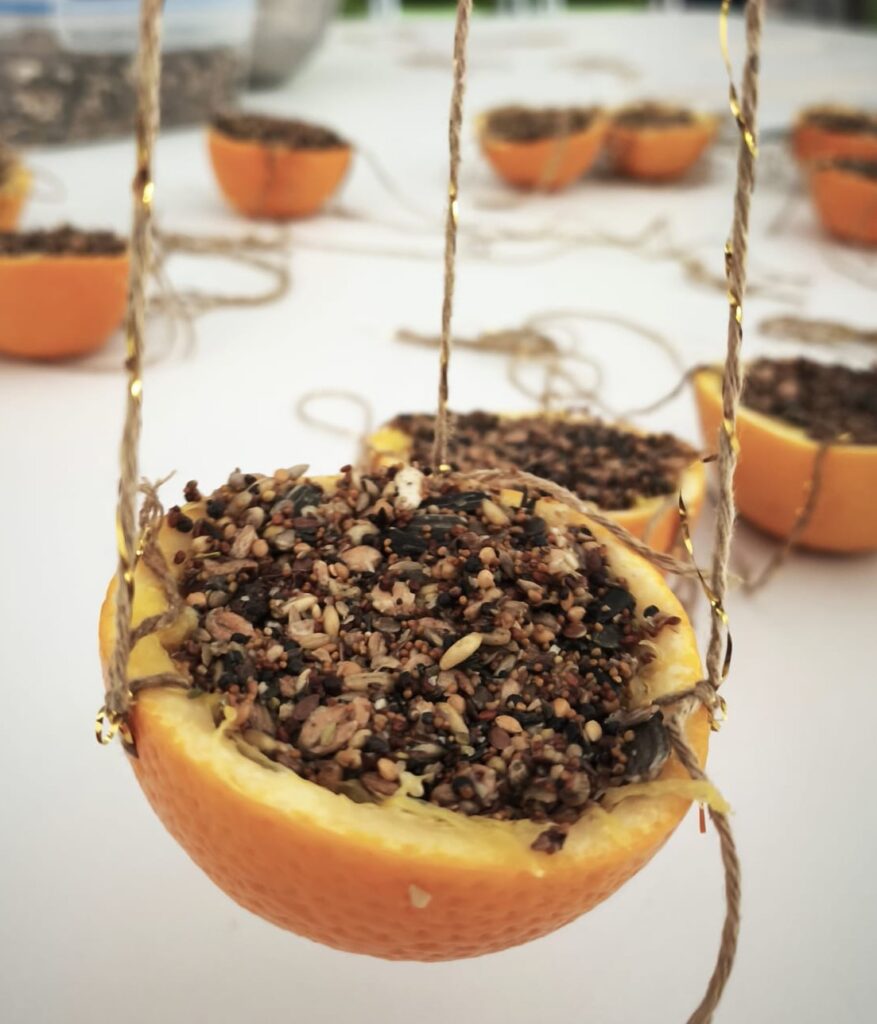 Pour finir, nous avons préparé des mangeoires pour les oiseaux, afin d’aider nos petits amis à se nourrir à l’approche de l’hiver, .