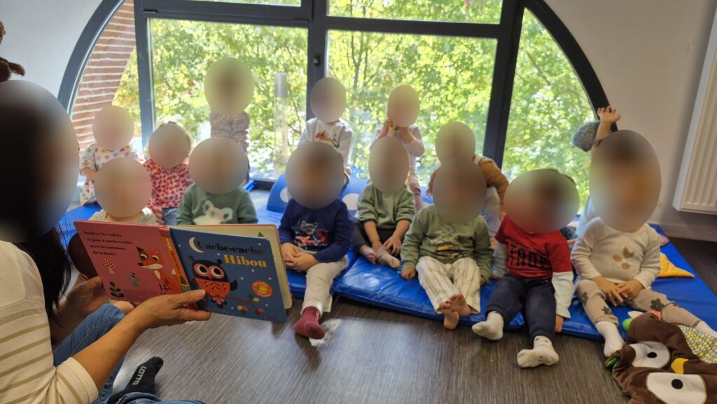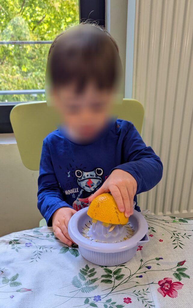 Après ces ateliers, les enfants ont partagé un temps calme, dégusté un jus d’orange bien mérité qu’ils ont préssé et écouté des histoires et comptines, un moment doux et convivial pour se reposer et profiter ensemble.