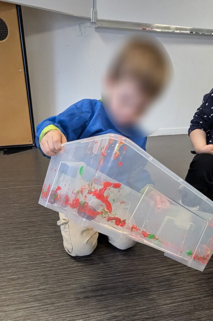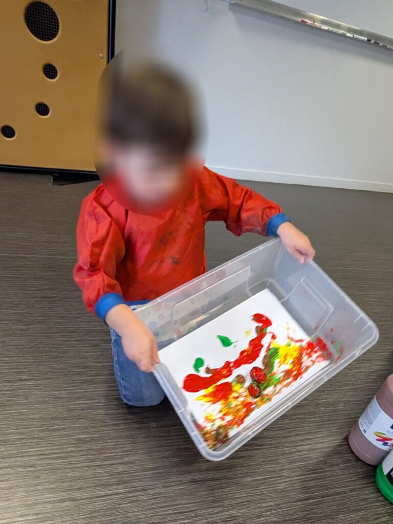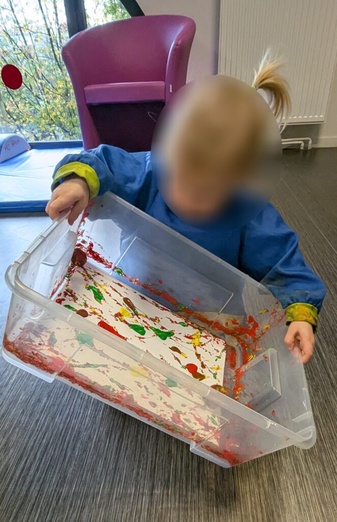Les enfants ont fait rouler des marrons dans la peinture, créant de jolis tourbillons de couleurs chaudes.