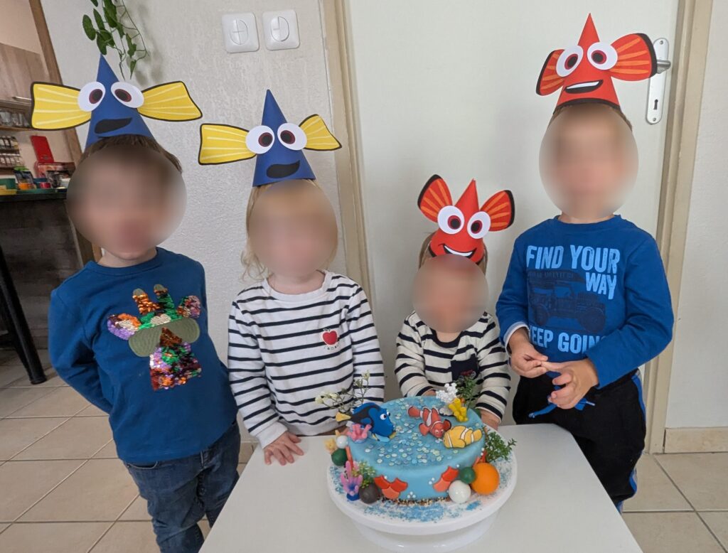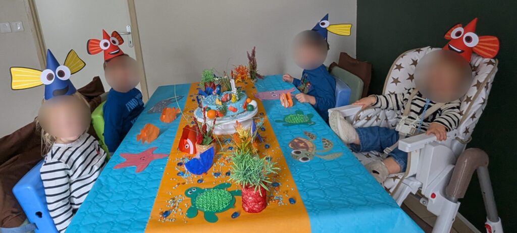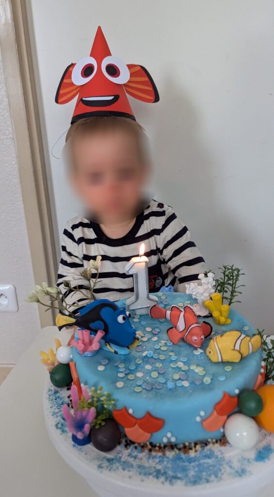 Et voilà, on a fêté l’anniversaire de Jules, il a souflé sa première bougie. Pour l’occasion, nous nous sommes parés de couleurs marines et nous avons plongé dans l’univers de Nemo.