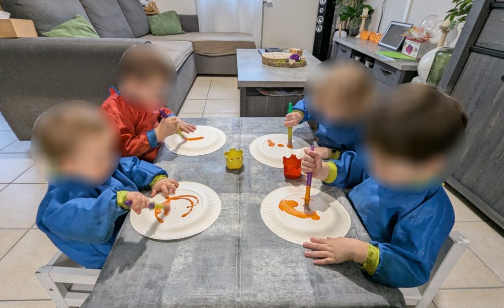 Ils ont peint une assiette en carton en orange, puis, avec un peu d’imagination et quelques découpages, nous l’avons transformée en bougeoir citrouille !