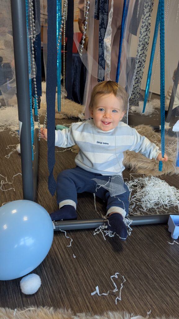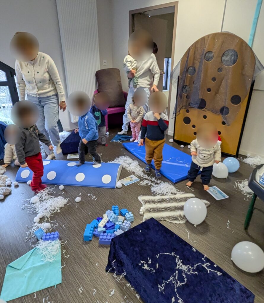 Avec l’association Éveil et Douceur, nous avons proposé aux enfants une matinée un peu spéciale : une salle sensorielle entièrement décorée sur le thème de la banquise et quel émerveillement en entrant !