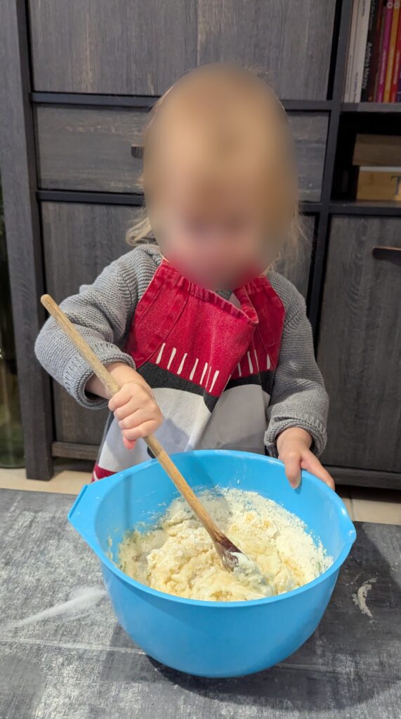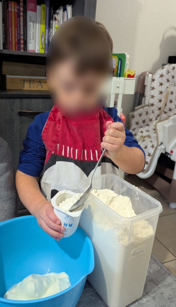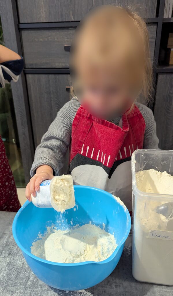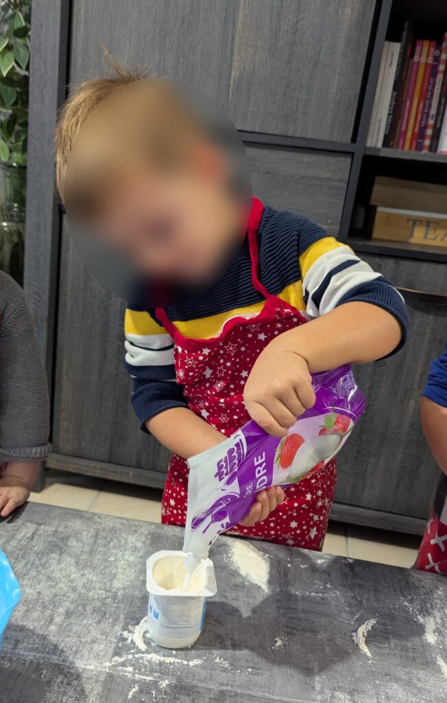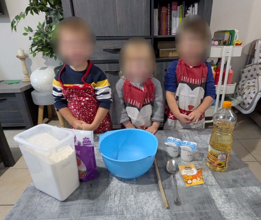 Demain, nous fêterons l’anniversaire de Jules. Qui dit anniversaire, dit gâteau. Alors Gabin, Marceau et Charlie ont préparé le gâteau pour l’anniversaire de Jules avec une recette sans oeuf pour que Jules puisse en manger. Ils ont bien travaillé, Maitenant, c’est à moi de travailler pour la décoration du gâteau. Il va encore falloir attendre un peu pour le découvrir fini.